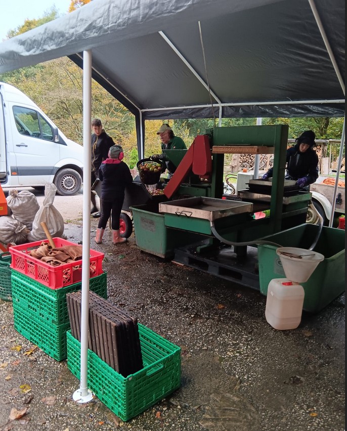 Heute dreht sich alles um Äpfel und das Herstellen von Apfelsaft und Apfelwein. Mitmachkeltern von 12°°-15°°Uhr.